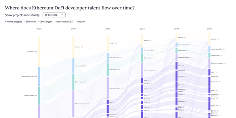 Open-source developer analytics across Ethereum and beyond. Unified data from Open Dev Data, GitHub Archive, and OSO — explore it in the browser, query it via API, or hand it to your AI agent.